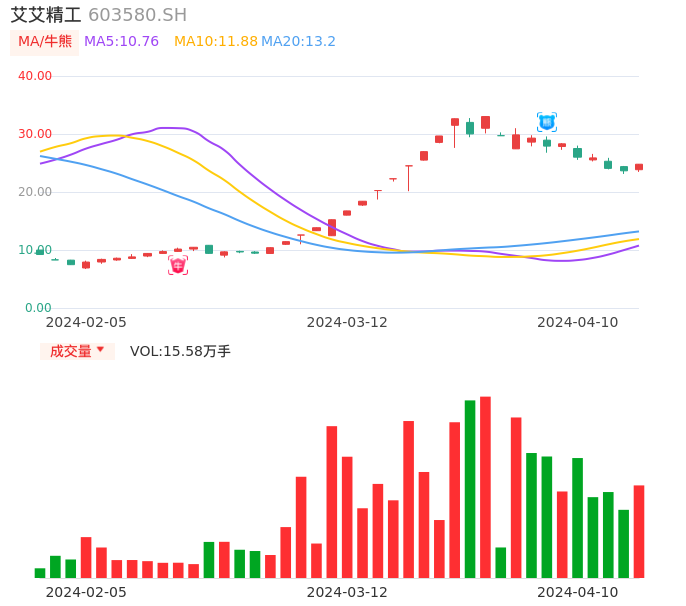 04月10日,艾艾精工收报24.79,股价涨幅4.82%,成交金额3.77亿元,换手率11.92%。