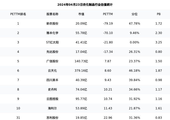 从估值角度看:苏利股份最新市盈率PETTM为22.96,在行业内排名28/57,处于31.36分位。