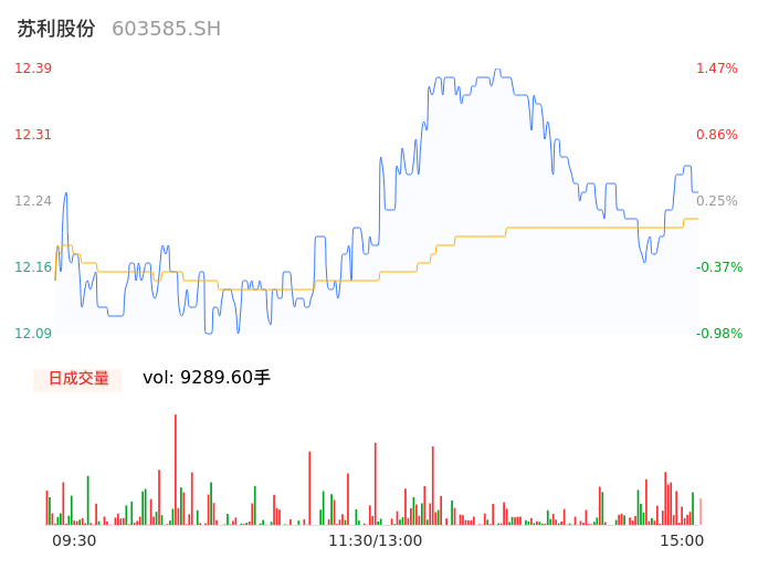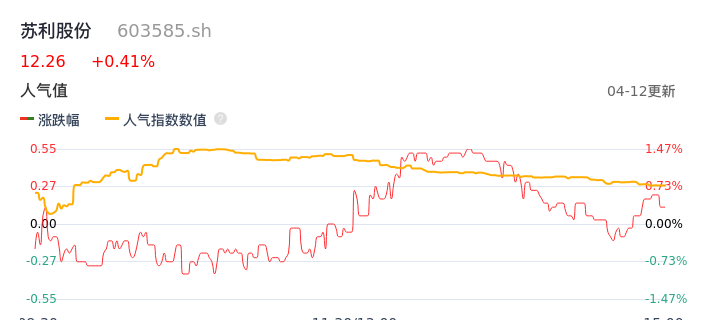04月12日,苏利股份收报12.26,股价涨幅0.41%,成交金额1134.78万元,换手率0.52%。