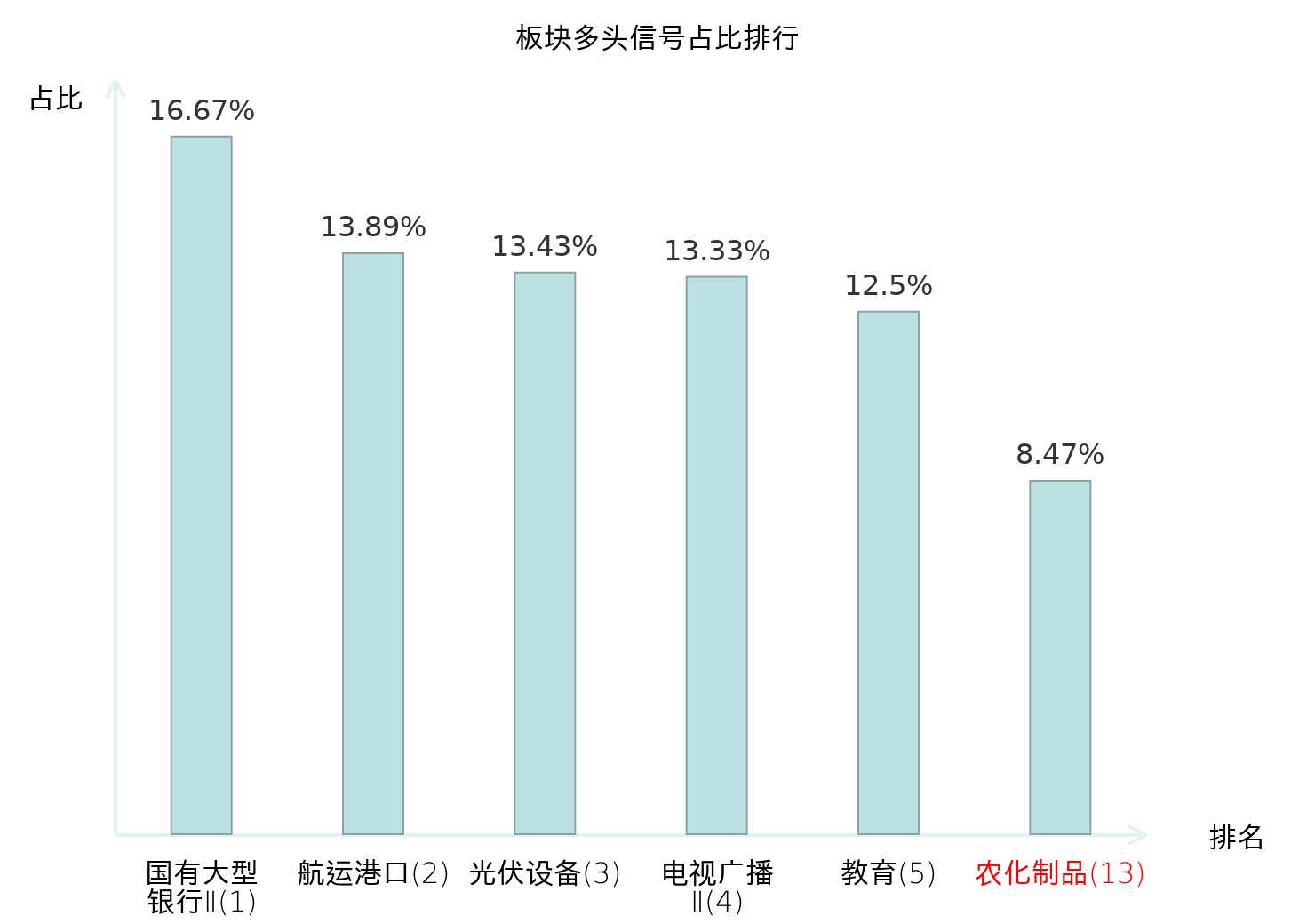 全市场所有行业板块中主力多头信号占比排名中,国有大型银行Ⅱ板块位居第一。国有大型银行Ⅱ板块名次提升最快,较昨日上升124位。