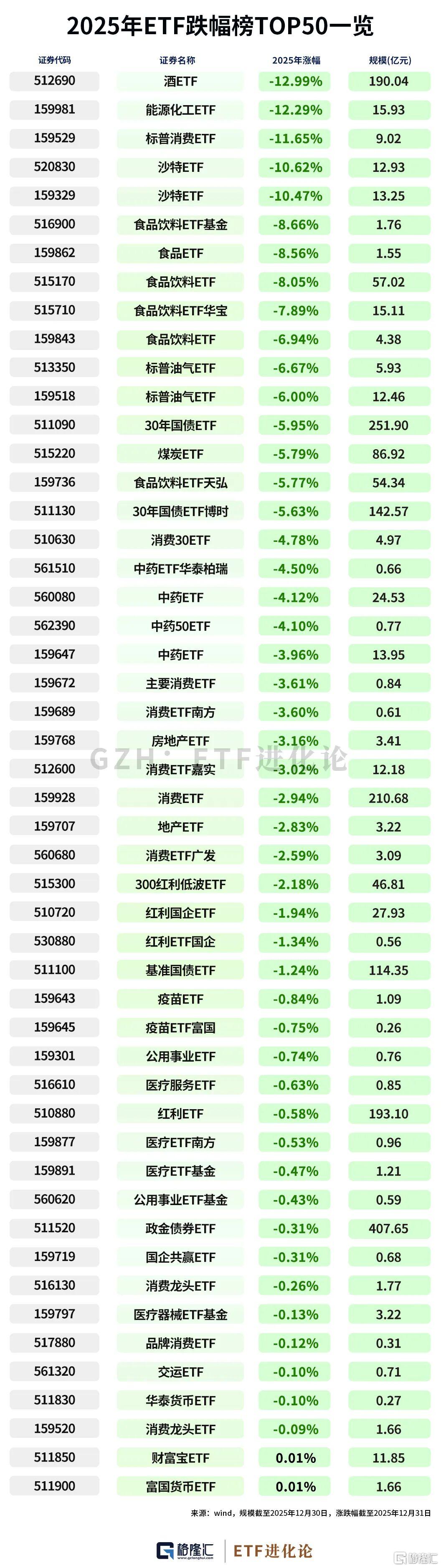 酒ETF、能源化工ETF、标普消费ETF、沙特ETF年内跌超10%。
