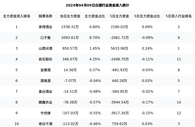 从主力资金流向来看,白酒行业今日主力资金流入27.65亿元,在所有申万二级行业中排名:50/131。