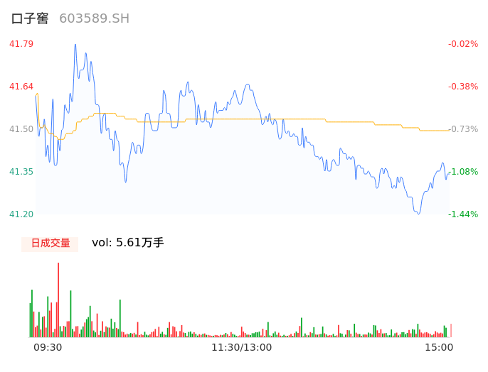 04月02日,口子窖收报41.36,股价涨幅-1.05%,成交金额2.33亿元,换手率0.94%。