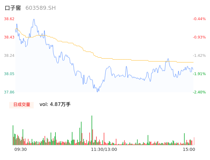 04月19日,口子窖收报38.11,股价涨幅-1.75%,成交金额1.86亿元,换手率0.82%。