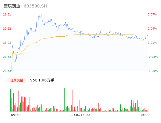 04月22日,康辰药业收报29.10,股价涨幅1.64%,成交金额3079.03万元,换手率0.67%。