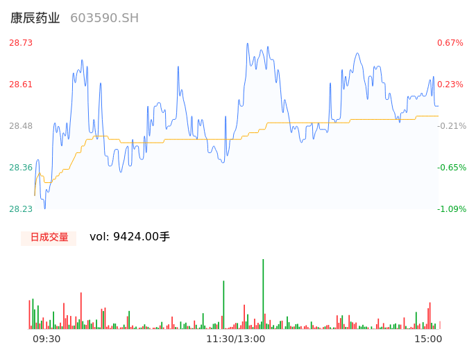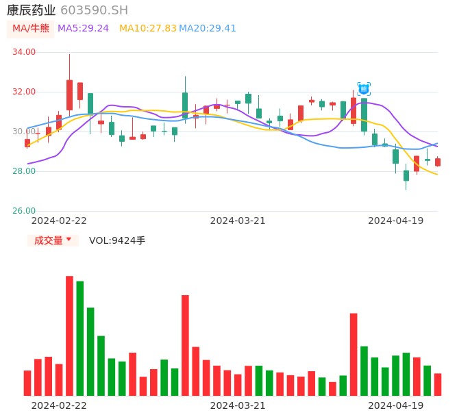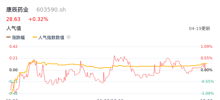 04月19日,康辰药业收报28.63,股价涨幅0.32%,成交金额2686.91万元,换手率0.60%。