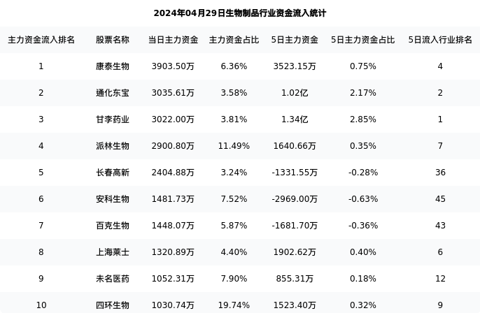 从主力资金流向来看,生物制品行业今日主力资金流入28.26亿元,在所有申万二级行业中排名:23/131。