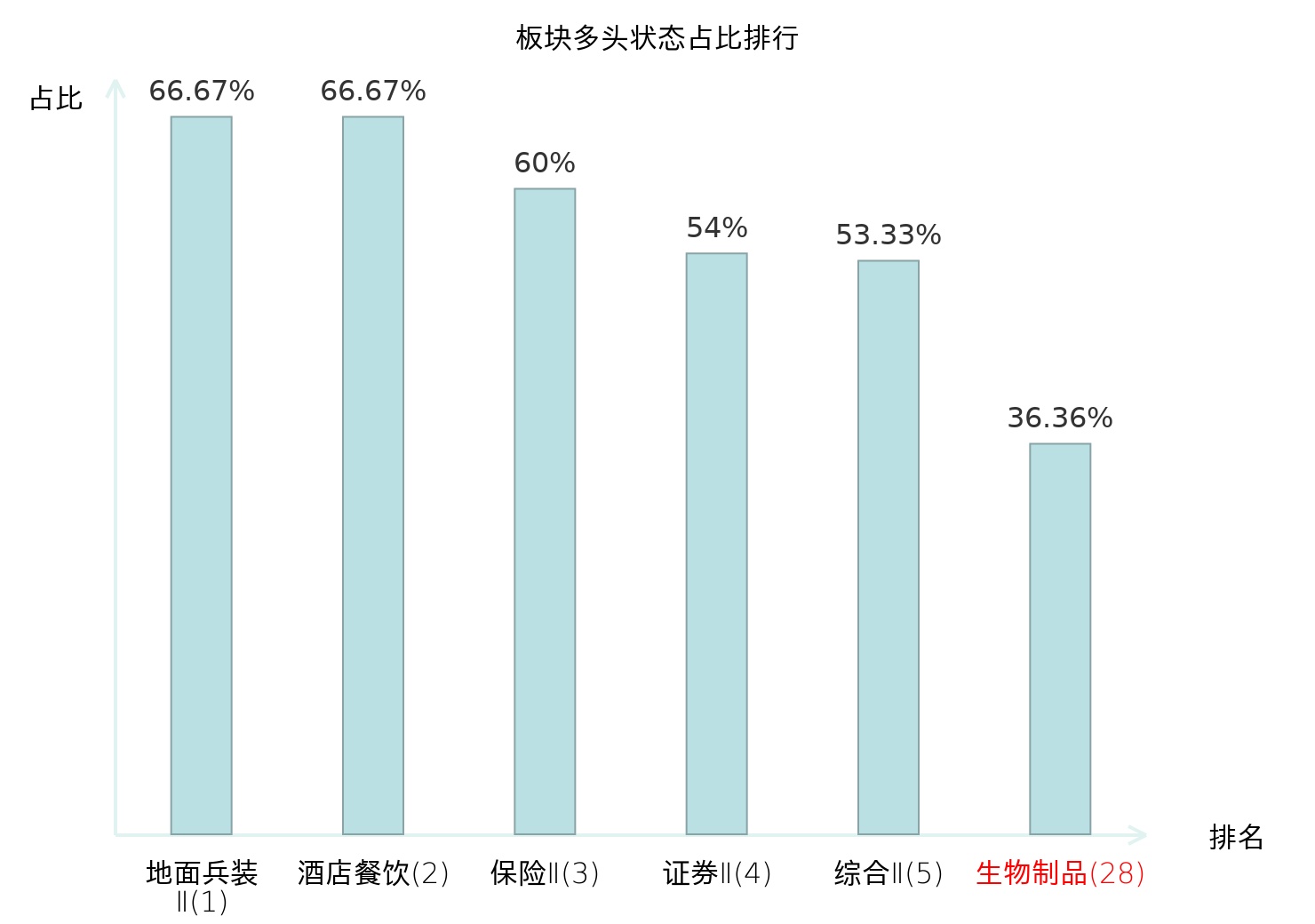 全市场所有行业板块中主力多头状态占比排名中,地面兵装Ⅱ板块位居第一。计算机设备板块名次提升最快,较昨日上升48位。