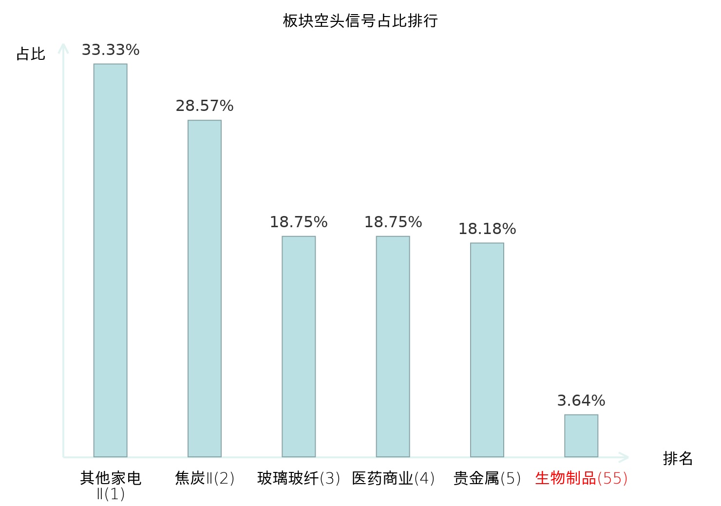 全市场所有行业板块中主力空头信号占比排名中,其他家电Ⅱ板块位居第一。工业金属板块名次提升最快,较昨日上升114位。