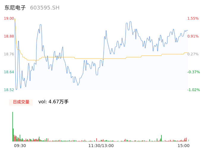 04月23日,东尼电子收报18.89,股价涨幅0.96%,成交金额8760.18万元,换手率2.01%。