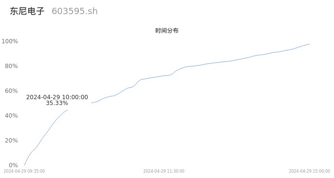603595东尼电子2024年04月29日成交8.78万手,成交金额1.87亿元,相较昨日放量4.47万手,换手率3.78%,成交清淡。
