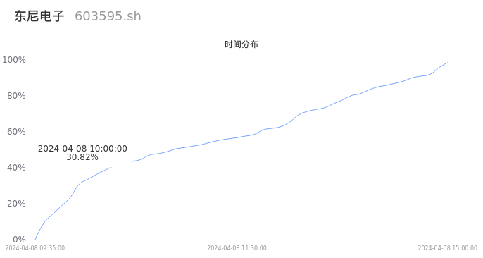 603595东尼电子2024年04月08日成交2.31万手,成交金额4816.74万元,相较昨日放量2726手,换手率0.99%,成交清淡。
