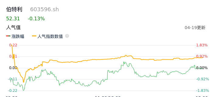 04月19日,伯特利收报52.31,股价涨幅-0.13%,成交金额2.41亿元,换手率1.07%。