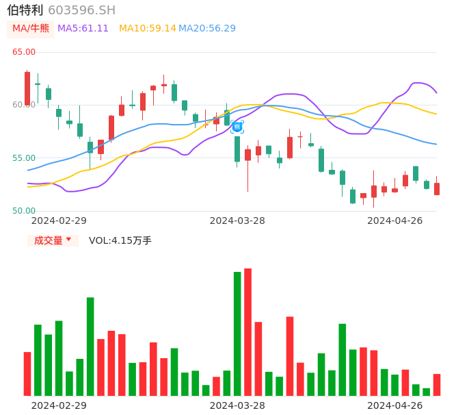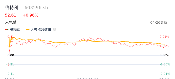 04月26日,伯特利收报52.61,股价涨幅0.96%,成交金额2.19亿元,换手率0.96%。