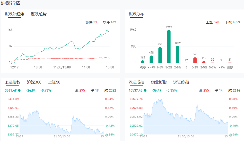 A股三大指数今日集体收跌,截至收盘,沪指跌0.73%,深成指跌0.35%,创业板指跌0.02%,北证50指数跌3.22%,微盘股指数跌5.70%,全市场成交额15252亿元,较上日缩量1917亿元。全市场近4800只个股飘绿。