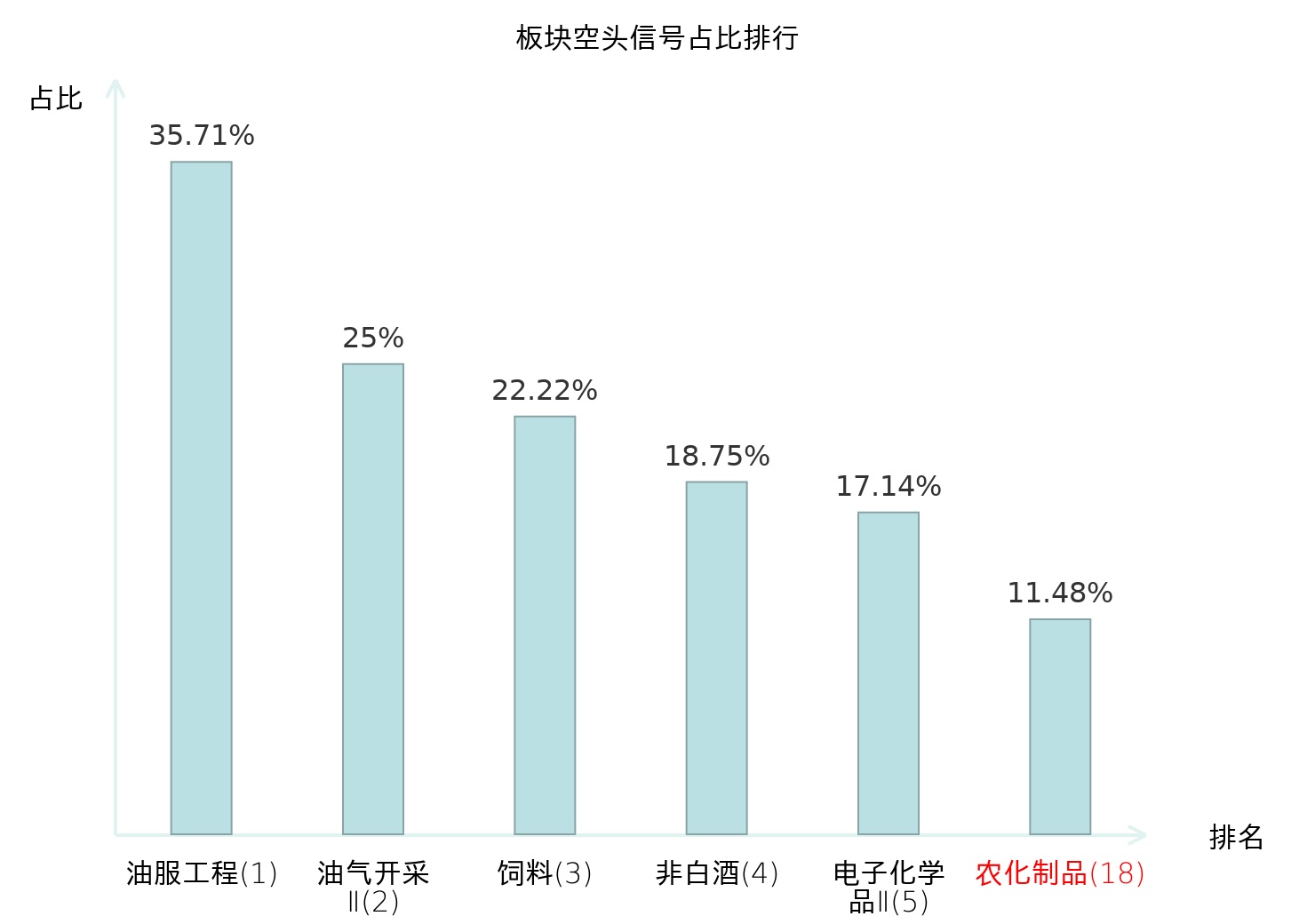 全市场所有行业板块中主力空头信号占比排名中,油服工程板块位居第一。电池板块名次提升最快,较昨日上升104位。