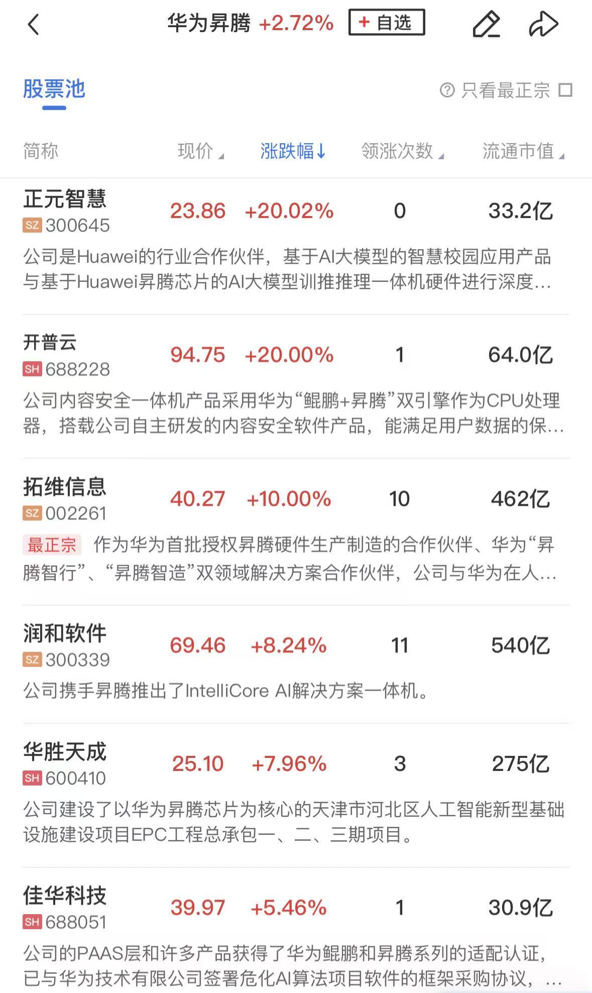 华为昇腾概念股表现活跃,拓维信息、正元智慧、开普云、天融信涨停,航天宏图、润和软件、常山北明等个股涨幅居前。