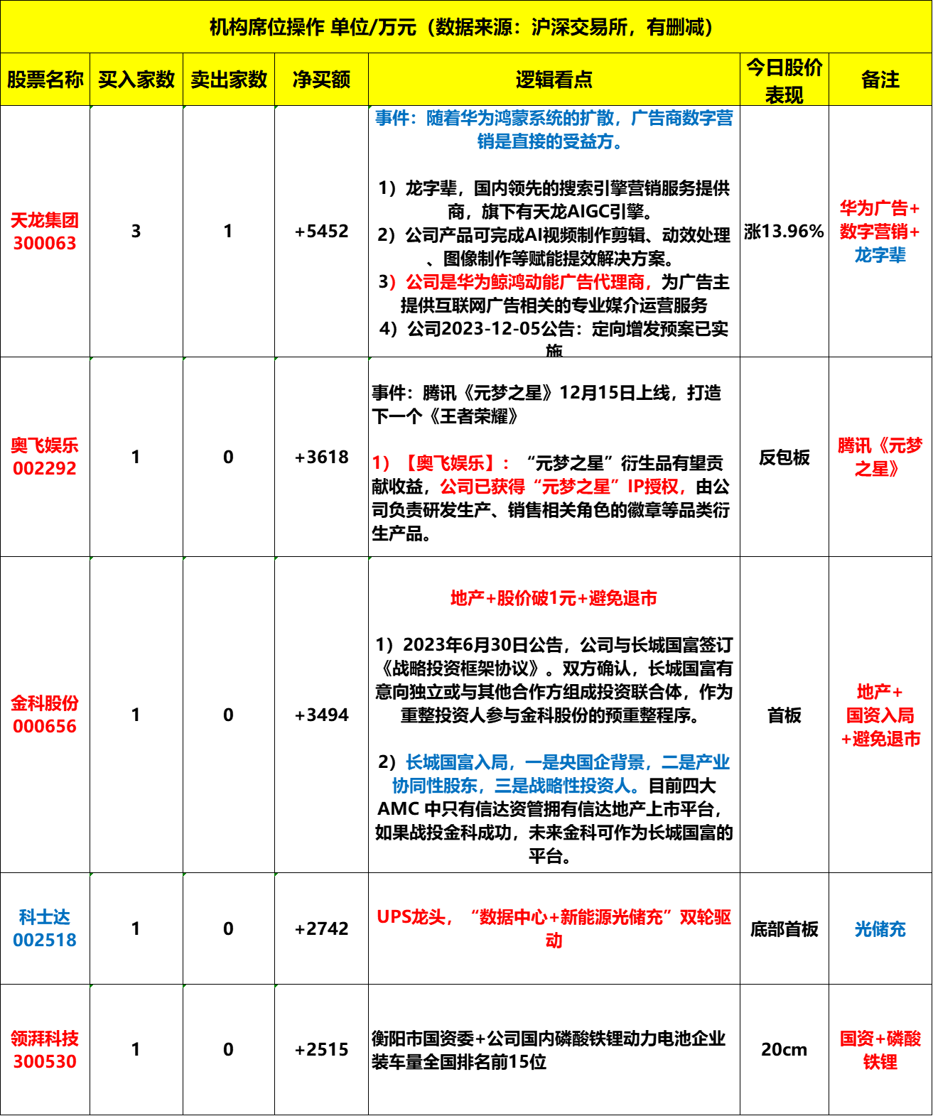 2023年12月21日,周四,龙虎榜解析。