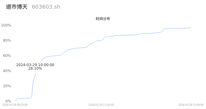 603603退市博天2024年03月29日成交58.21万手,成交金额2930.45万元,相较昨日放量29.85万手,换手率7.12%,成交清淡。