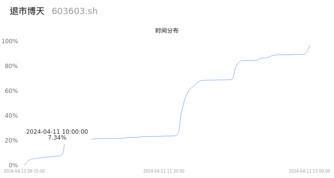 603603退市博天2024年04月11日成交17.88万手,成交金额793.78万元,相较昨日放量8.28万手,换手率2.19%,成交清淡。