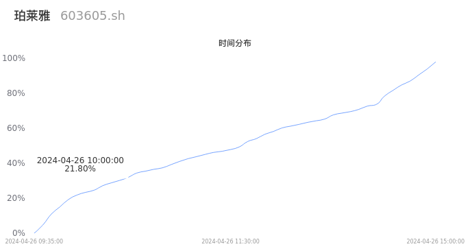 根据成交分布分析,该股票当天放量成交,成交清淡。时间上看,早盘前半小时成交量占据当天总成交量的21.8%;价格上看,成交呈现中间峰。成交分布分析主要研究股票成交的分布特性,不具有预测功能,请知悉。