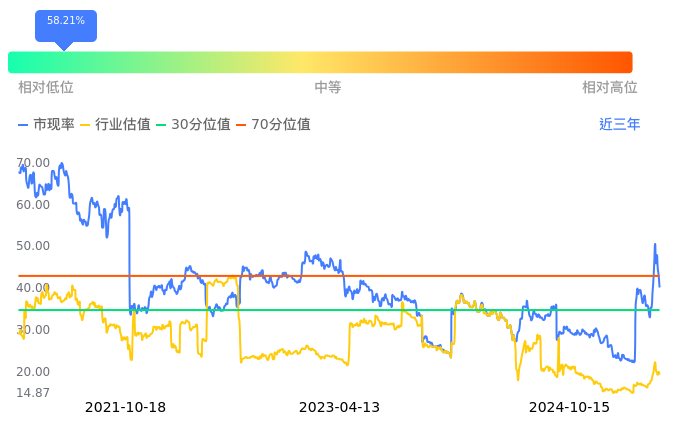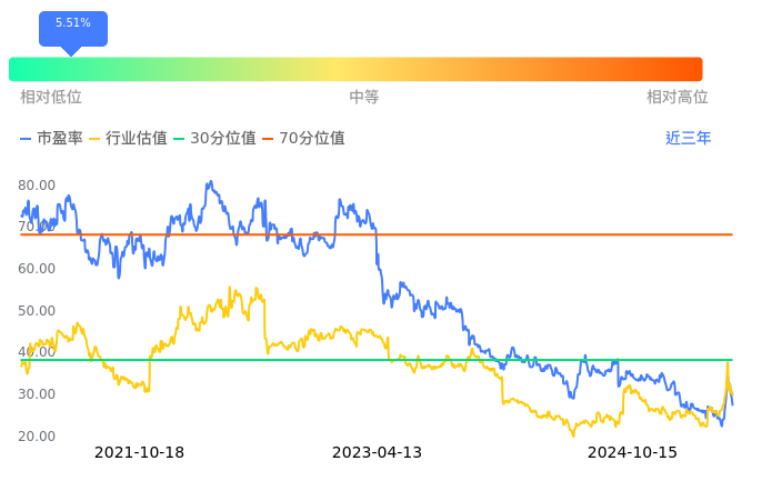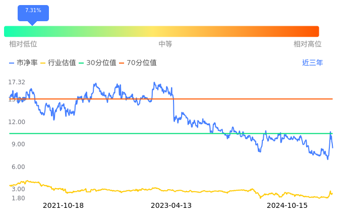 2024年10月15日,珀莱雅下跌6.73%收于96.11,今日成交金额8.08亿。下文将从市盈率PETTM、市净率PB、市现率3个角度去分析公司估值情况。