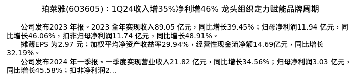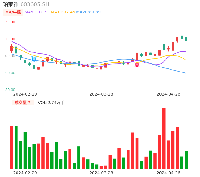 值得注意的是:2024年04月海通国际的李宏科/汪立亭分析师,首次发布关于珀莱雅的研究报告,标题为:珀莱雅(603605):1Q24收入增35%净利增46% 龙头组织定力赋能品牌周期。