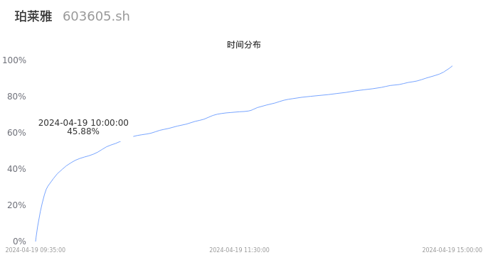 根据成交分布分析,该股票当天放量成交,成交清淡。时间上看,早盘前半小时成交量占据当天总成交量的45.88%;价格上看,成交呈现右偏峰。成交分布分析主要研究股票成交的分布特性,不具有预测功能,请知悉。