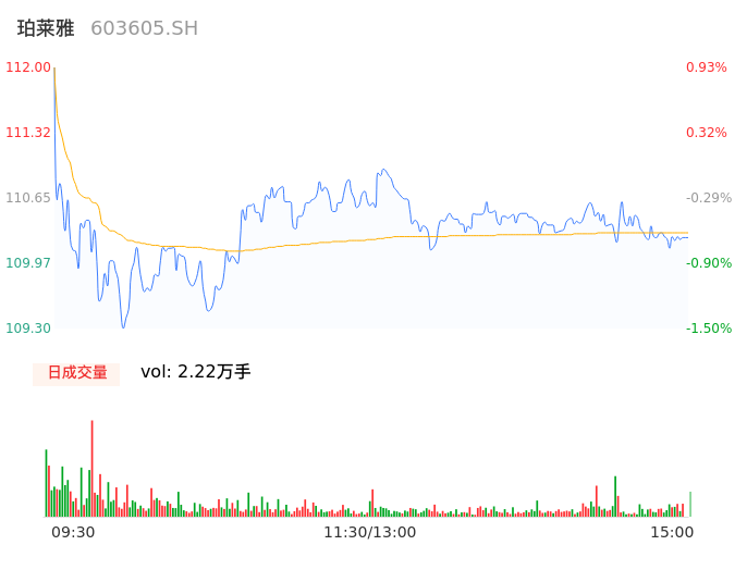 04月25日,珀莱雅收报110.12,股价涨幅-0.77%,成交金额2.45亿元,换手率0.56%。