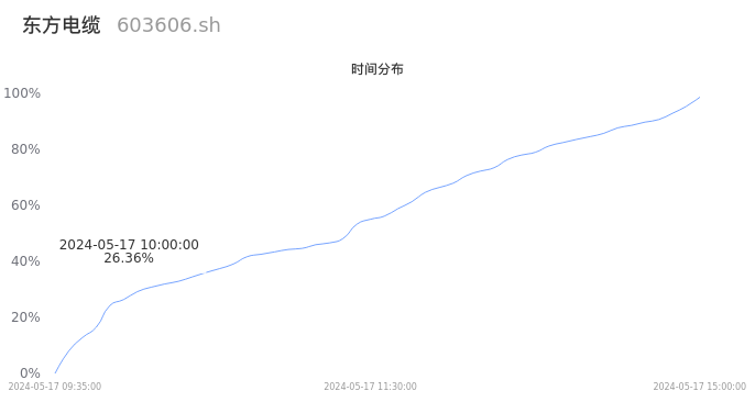 603606东方电缆2024年05月17日成交6.43万手,成交金额3.04亿元,相较昨日缩量3.76万手,换手率0.93%,成交清淡。