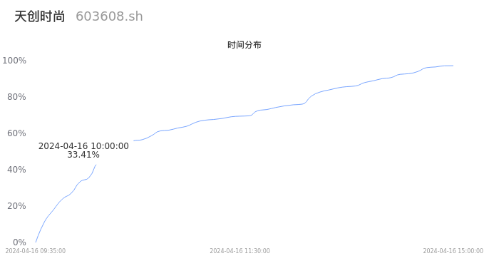 603608天创时尚2024年04月16日成交13.11万手,成交金额6068.40万元,相较昨日放量458手,换手率3.12%,成交清淡。