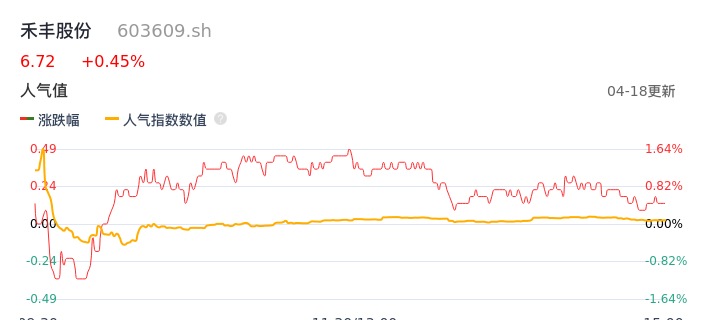 04月18日,禾丰股份收报6.72,股价涨幅0.45%,成交金额2435.18万元,换手率0.39%。