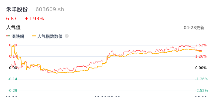 04月23日,禾丰股份收报6.87,股价涨幅1.93%,成交金额3994.44万元,换手率0.64%。