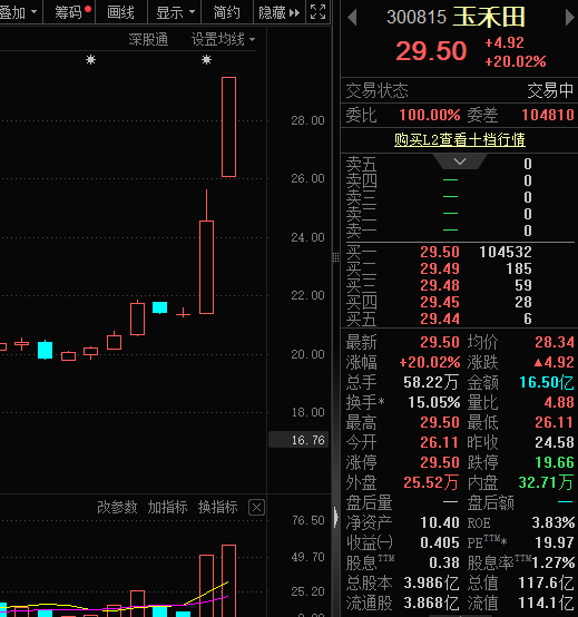 玉禾田(300815)今日大幅高开,约9:43封住涨停板,午间收盘仍有10万手封死涨停。这一股价异动背后,与一则股权变更消息不无关系。