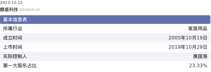麒盛科技股票分析报告-20231212收盘上涨1.42%