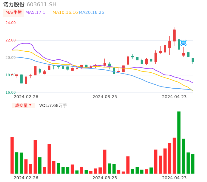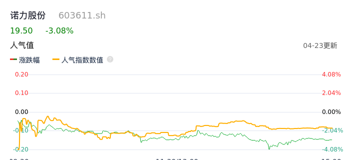 04月23日,诺力股份收报19.50,股价涨幅-3.08%,成交金额1.51亿元,换手率2.98%。