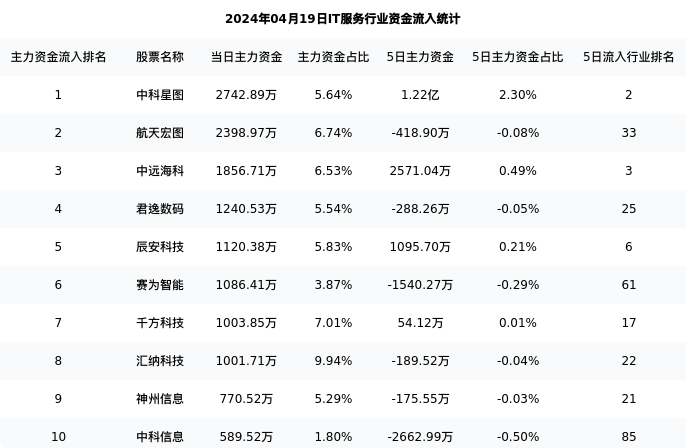 从主力资金流向来看,IT服务行业今日主力资金流入42.68亿元,在所有申万二级行业中排名:8/131。