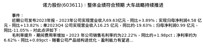 值得注意的是:2024年04月东北证券的刘俊奇/高伟杰分析师,首次发布关于诺力股份的研究报告,标题为:诺力股份(603611):整体业绩符合预期 大车战略持续推进。
