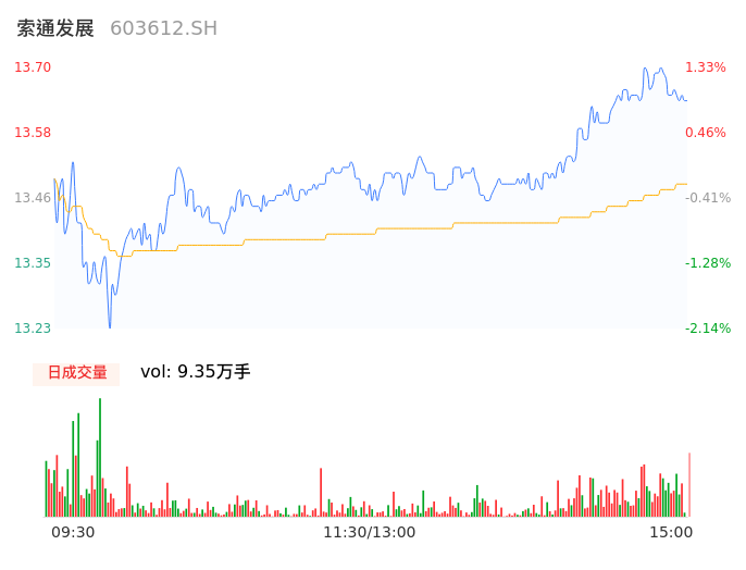 04月26日,索通发展收报13.66,股价涨幅1.04%,成交金额1.26亿元,换手率1.99%。