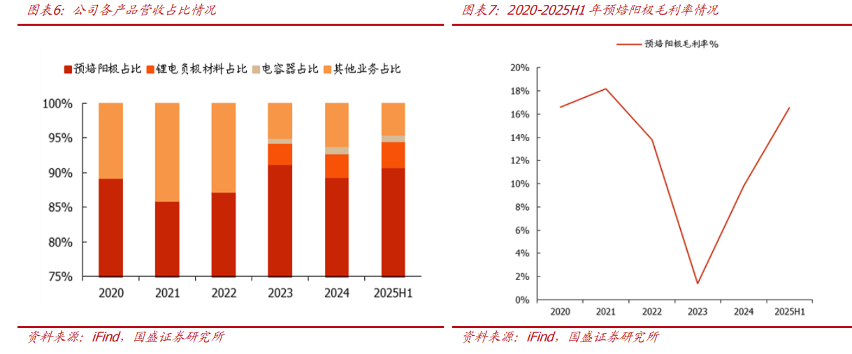 截至2025年7月,公司预焙阳极在产产能346万吨,计划2025年末预焙阳极签约产能达到约500万吨,负极产能8万吨,煅后焦130万吨,薄膜电容器超20亿只生产规模。