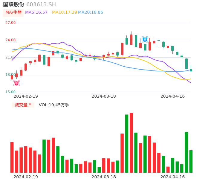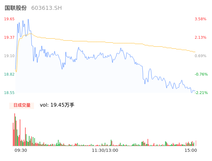 04月16日,国联股份收报18.59,股价涨幅-2.00%,成交金额3.73亿元,换手率2.69%。