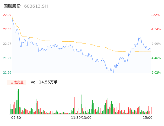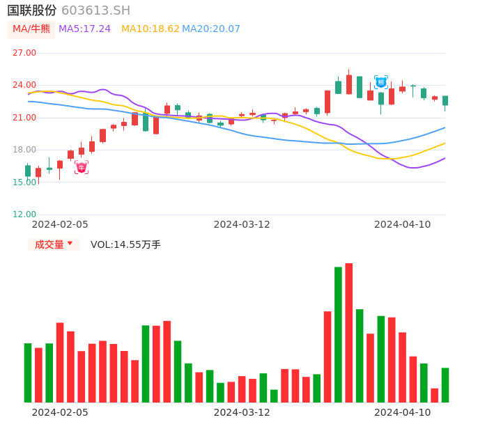 04月10日,国联股份收报22.15,股价涨幅-3.44%,成交金额3.21亿元,换手率2.01%。