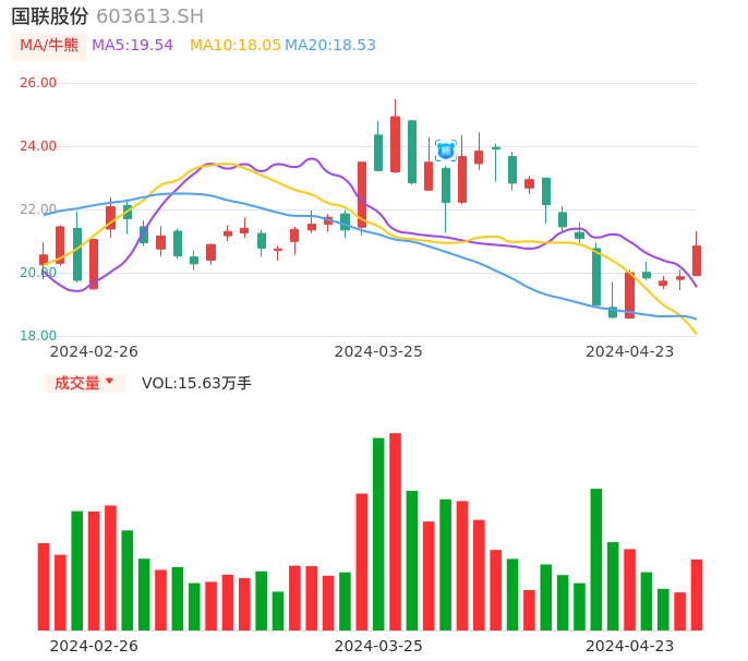 04月23日,国联股份收报20.84,股价涨幅4.88%,成交金额3.21亿元,换手率2.16%。