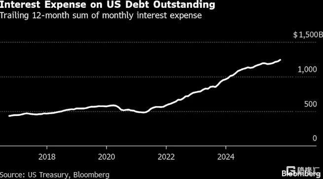 据证券业与金融市场协会数据,2020年美国通过发行上述三类国债融资4.3万亿美元,当年财政赤字超过3万亿美元。尽管赤字此后有所收窄(2025财年降至约1.78万亿美元),但仅债务利息支出就高达1.2万亿美元。