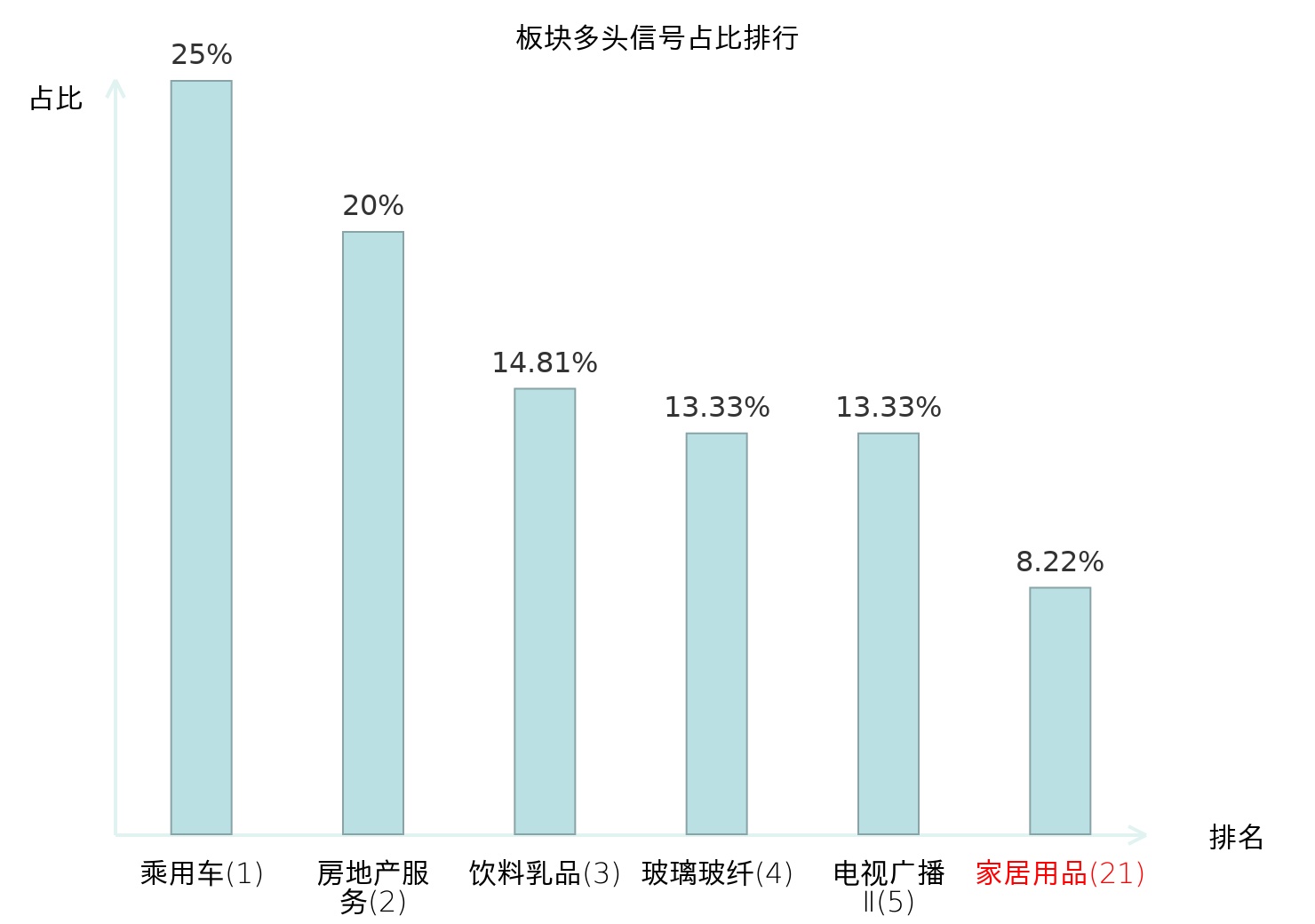 全市场所有行业板块中主力多头信号占比排名中,乘用车板块位居第一。乘用车板块名次提升最快,较昨日上升117位。