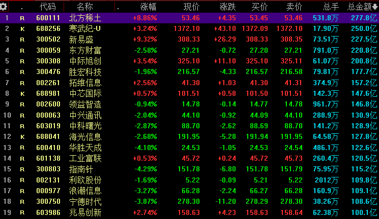 A股过去的时代没怎么像美股一样走过慢牛,今年刚有点苗头,大家也要适应新的环境,一方面是行情的走势,另一方面是板块龙头股的走势,今天有19股成交量超百亿↓