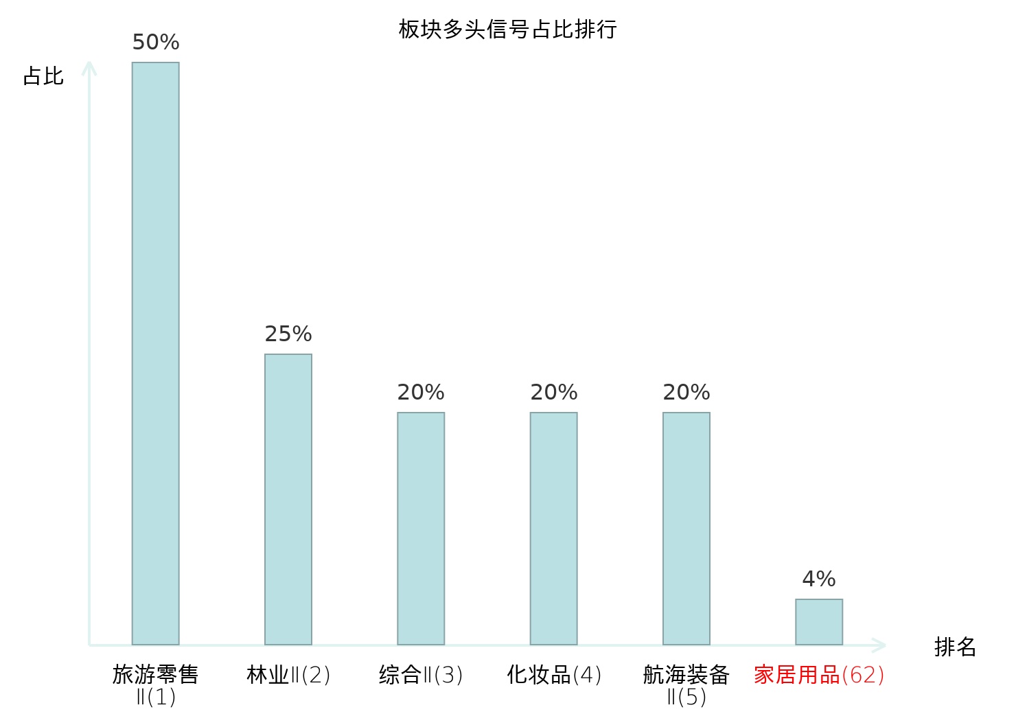 全市场所有行业板块中主力多头信号占比排名中,旅游零售Ⅱ板块位居第一。旅游零售Ⅱ板块名次提升最快,较昨日上升129位。