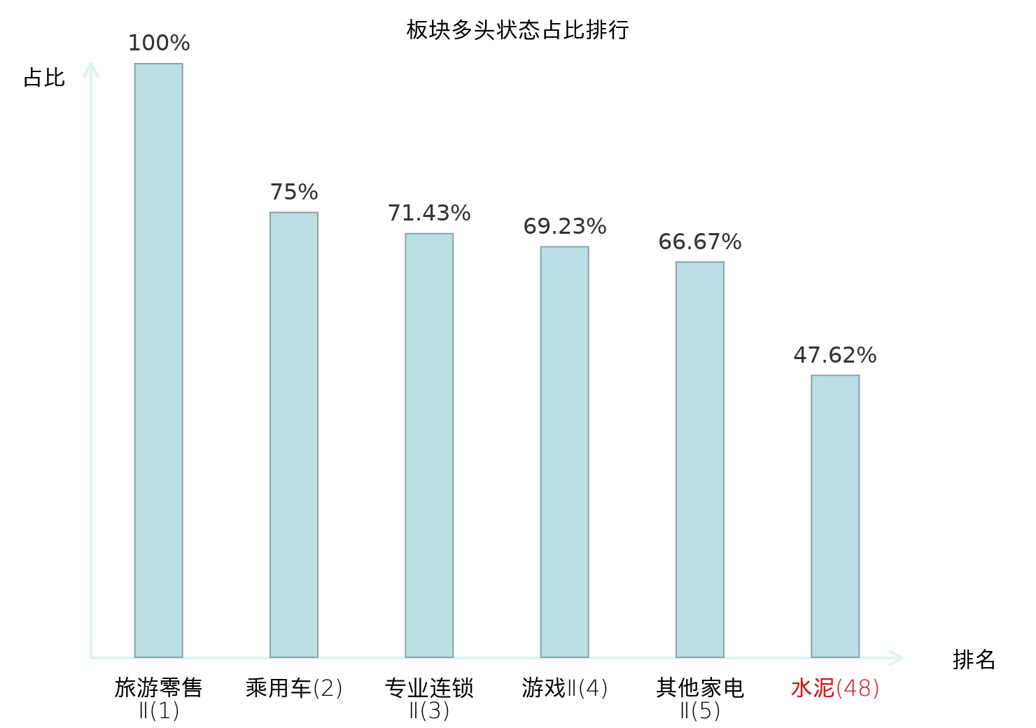 从主力宝信号数据分析,韩建河山所属的水泥板块中共有10只股票处于主力多头状态,主力多头状态占比在全行业中排名第48位,较昨日下降5位。较高的排名表明主力对于该板块整体看多意愿较强,而此次排名下降可能反映了主力对该板块态度的一些微调。全市场所有行业板块中主力多头状态占比排名中,旅游零售Ⅱ板块位居第一;保险Ⅱ板块名次提升最快,较昨日上升82位。这些变动揭示了不同行业间主力资金动向的趋势,为投资者提供了关于市场情绪和潜在投资机会的重要线索。