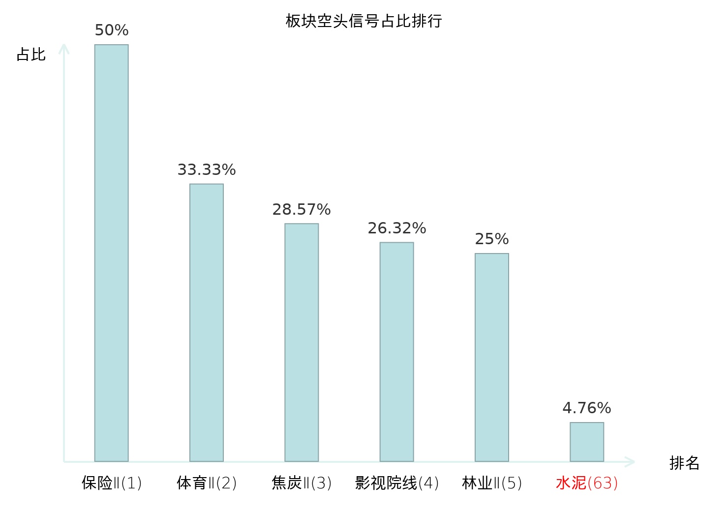 全市场所有行业板块中主力空头信号占比排名中,保险Ⅱ板块位居第一。装修建材板块名次提升最快,较昨日上升118位。