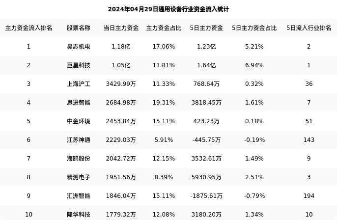 从主力资金流向来看,通用设备行业今日主力资金流入67.97亿元,在所有申万二级行业中排名:43/131。